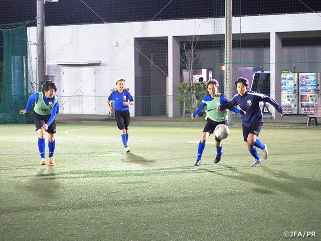 JFAアカデミー堺は、基本をしっかりと身につけることを重点的におこなっています。チームとして公式戦に出場する機会はありませんが、平日の活動の中で、高校の女子チームや3種の女子チーム・男子チームとトレーニングマッチ(対外試合)をすることで、日々のトレーニングで取り組んでいることの成果と課題を確認しながら選手が刺激になるよう、より良いトレーニングの追求をしています。