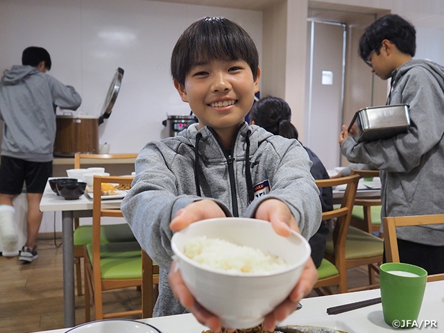 JFAアカデミー堺に入校してから半年が経ち、私はたくさん成長できたことがあります。たとえば食事についてです。入校したばかりの頃は、寮で出される食事の量が多く、食べきることが精一杯でおかわりなんてできませんでした。最初の頃は、「3年間毎朝夕こんなにたくさん食べるのは大変だ」と思っていましたが、今では夕食のときにご飯をおかわりすることもできるようになりました。また、嫌いな食べ物も残さず食べなければいけないので、慣れてきて食べられるようになってきました。