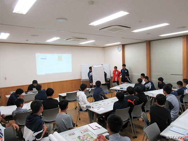 この2日間、高いレベルの中でトレーニングすることで、選手が明らかに変化していく姿を見ることができました。激しいプレッシャーの中でもテクニックを発揮し、ボールを奪い合うプレーの連続に大変刺激を受けました。夜は選手同士でグループワークを行い、サッカーの様々な局面における原理・原則について意見を出し合い、それが2日目のトレーニングに生かされていました。今回学んだことを、今後の指導に生かしていきます。