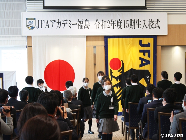 2020年4月7日(火)にJFAアカデミー福島の入校式が行われ、アカデミースタッフ、保護者に祝福された15期生の男子16名、女子7名の計23名が入校しました。