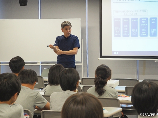 JFAアカデミー堺では4日(月)、小川佳実JFA審判委員長を講師に迎え、「審判への理解を深める」というテーマで講義を実施しました。