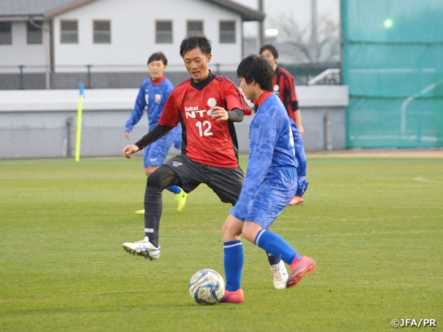 この日は、午前中で学校の授業を終えて帰寮した4期生と、J-GREEN堺スタッフ、JFAアカデミー堺のコーチ、スタッフも揃って、メインピッチにてフレンドリーマッチを行いました。
