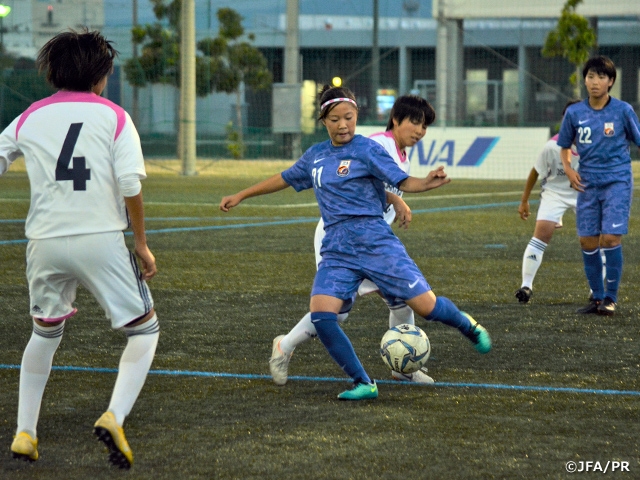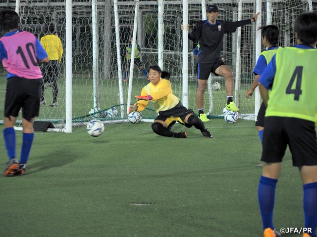 10月は、中学校の中間テストがあり、トレーニング時間を30分短縮して勉強に集中しました。中間テスト後は、近隣の高校生とトレーニングマッチ実施したり、「スポーツ庁委託事業 女性アスリートの育成・支援プロジェクト婦人科講習」を受講するなど、オン・オフともに充実した生活を送っています。日没時間が早くなってきたため、選手達のトレーニングする17時頃は徐々にグラウンドが薄暗くなり肌寒さが増してきています。この時期は、ナイター照明の下でトレーニングを行っています。
