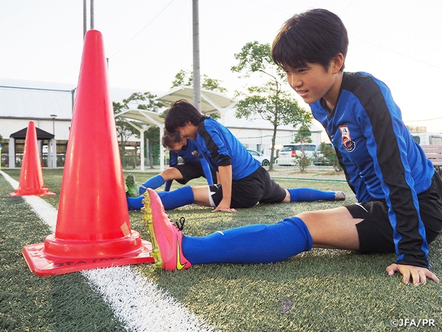 私は、2学期に入ってすぐに、腰の骨の剥離骨折と診断され、復帰まで4ヶ月ほどかかると言われました。せっかくJFAアカデミー堺に入ったのに、サッカーができないなんてとてもつまらないし、同級生がサッカーをしているのを見ていても面白くありませんでした。みんなに置いていかれているような気持ちがしました。でも、リハビリを考えてくれるトレーナーさんがいたり、お父さんやお母さんが「今はゆっくりしっかり怪我を治したらいいよ」と言ってサポートしてくれました。頑張って治そうと思いました。JFAアカデミー堺に入校してから、怪我をしたり、中学校のテストの成績が悪かったりと、良いことがなかった時期はとても辛かったです。家に帰りたくなるときもありました。しかし、コーチやスタッフは頑張った時に褒めてくれました。そのときはとても嬉しいし、寮で一緒に生活している友達といる時間はとても楽しくて、出会えて良かったと思っています。楽しいことばかりではないけれど、1月頃からは怪我も回復して復帰できると思うので、リハビリを頑張って怪我をしない身体を作ってもう一度頑張っていきたいです。そして早くみんなとサッカーがしたいです。