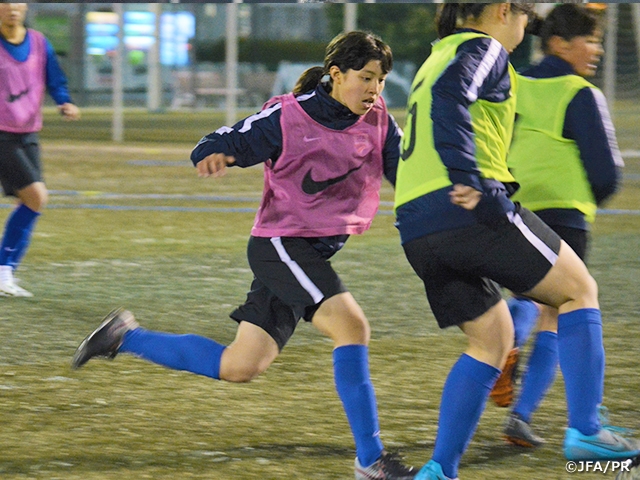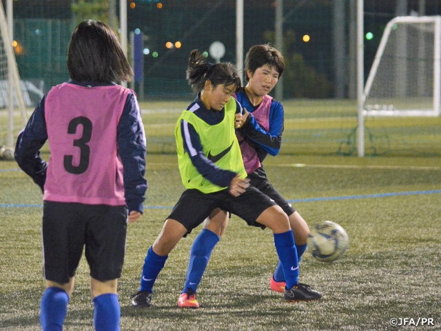 私は今年、攻守に多く関わり続けられる選手になることと、左右差のないキックを身につけることを目標にしてトレーニングに取り組んできました。毎日のトレーニングではゲームやポゼッションの練習のときに、苦手な右足を意識的に使ってプレーの幅を広げられるように取り組みました。また常に準備をして攻撃にも守備にもすぐに対応できるように意識しました。こうして目標をもって取り組むことで、高校生とのトレーニングマッチのときにも、仲間が合わせやすい場所に正確にクロスを上げることができたり、守備でも粘り強く相手について行き、奪いきれる回数が増えてきました。JFAアカデミー堺で過ごす時間もあとわずかになりました。3年間で学んだことを活かして、高校で活躍できるように頑張っていきたいです。