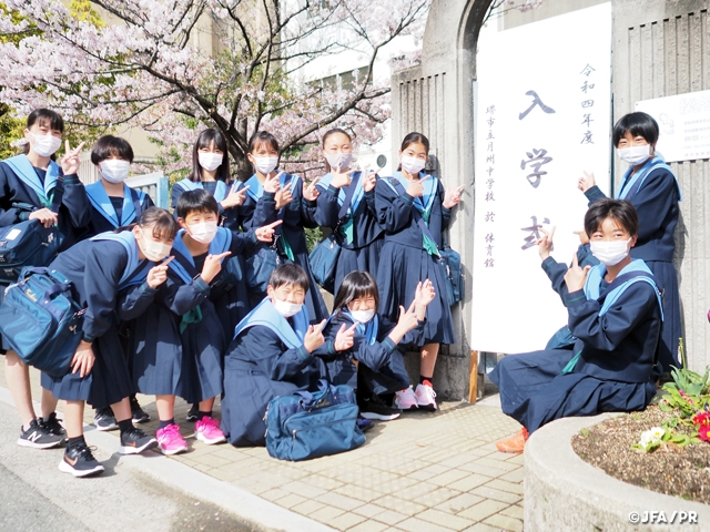 4月5日(火)の入校式は晴天に恵まれ、家族や来賓のみなさまに見守られる中、それぞれ3年間の活動に向けて決意を表明しました。また、佐々木則夫女子委員長より、「成功の反対は失敗ではなくチャレンジしないこと。チャレンジして頑張ってください」と、激励の言葉が贈られました。