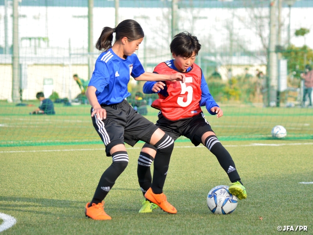 入校式に先立って11期生は4月2日(土)にJFAアカデミー堺の寮に入寮しました。翌4月3日(日)、11期生にとってのアカデミーでの最初のトレーニングは、雨が降る中となりましたが、コーチの説明を聞きながら真剣に練習に取り組んでいました。