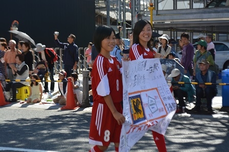 JFAアカデミーの五訓を示した手作りの横断幕を持って行進しました。