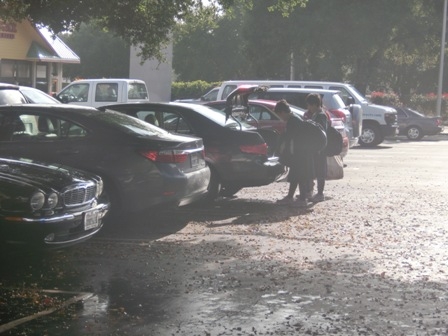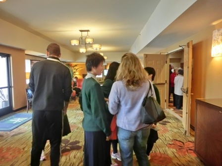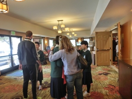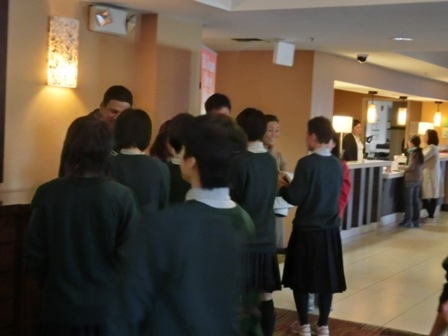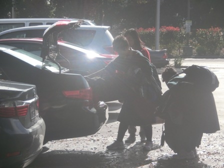 ホストファミリーにそれぞれ集合場所まで送ってもらい、別れを惜しみます。