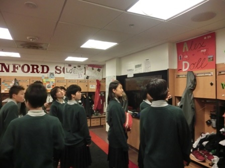 選手ロッカーを興味深く眺めます。