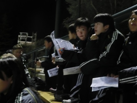 アシスタントコーチ、GKコーチの首脳陣が夜のゲームの前の