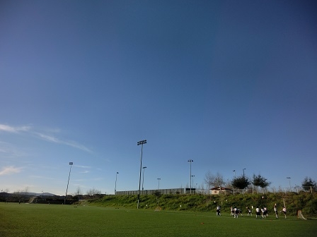 ベンチコートを着る選手たちがすたすた歩いていきます。