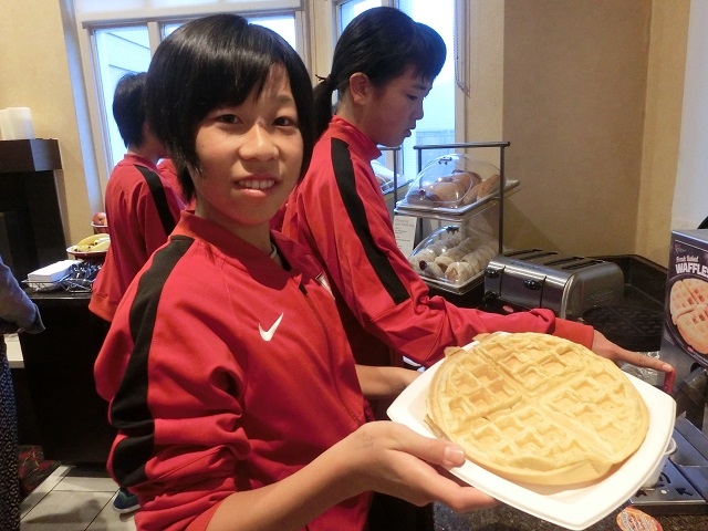 毎回CAMPで大人気のワッフルにチャレンジする選手や
