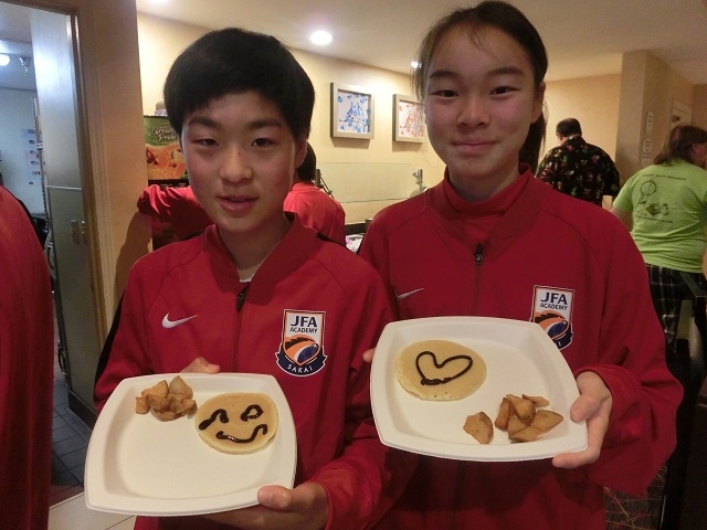 パンケーキをかわいく?デコレーションする選手
