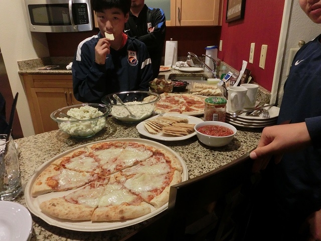 リラックスしながら午後の試合に備えてたくさん食べ、身体を休めました。