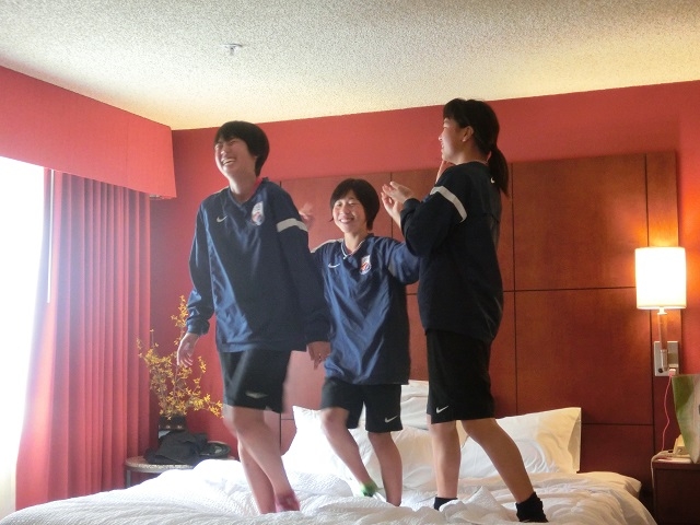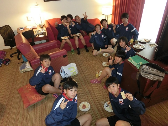 選手が宿泊する部屋を利用して、ルームパーティーをしました。
