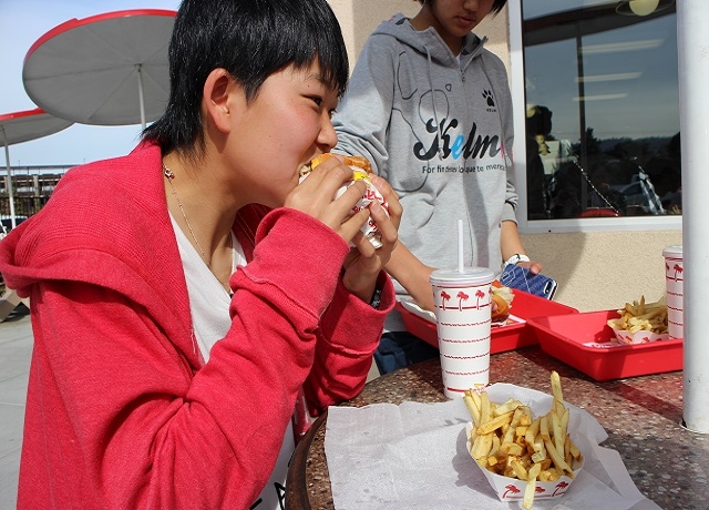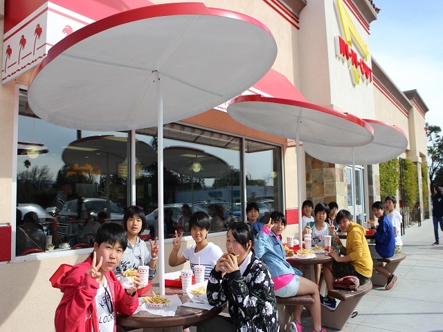 大学訪問のあとはスタッフ待望のIN-N-OUTにて腹ごしらえ。