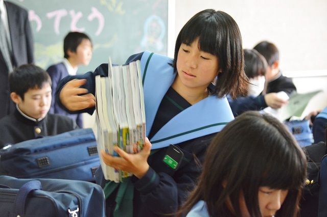 この日は、入学式に出席する上級生(前年度学級代表)に連れられて、
