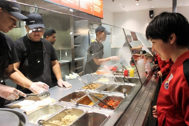 他の選手もそれを参考にしながらタコスなどそれぞれに食べたいものを選び、