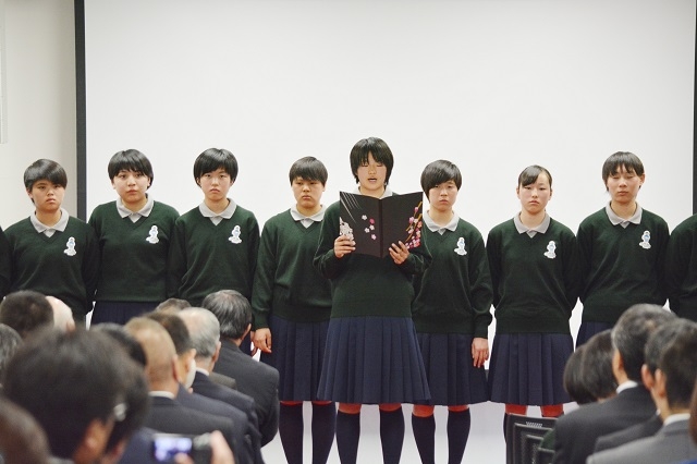 お世話になった先輩たちに、在校生を代表して感謝の気持ちと