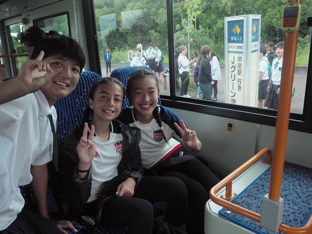 サンラモンFCの選手達も、通学路の景色を見渡したり、日本の路線バスに乗って元気よく登校しました。