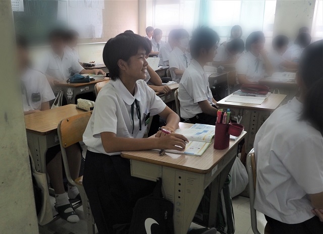 とーっても真剣に授業を受けている2年生の林織羽を発見!こちらの視線が気になるようで・・・。
