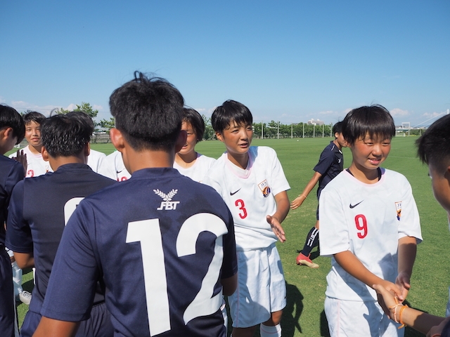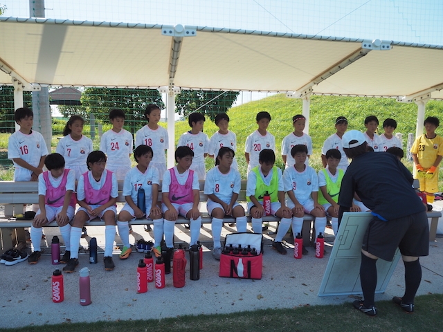 前半はとてもスピードのある選手の対応に苦労していましたが、後半はしっかりと対策をして相手の反撃を抑えることができしました。個では相手を観ながら変化に対応することに課題が多い選手が多かったですが、高い気温の中でしっかりとハードワークできていました。慌ててしまい、正確なテクニックを発揮できていない選手もいました。このあたりは2学期のトレーニングの課題にして欲しいです。