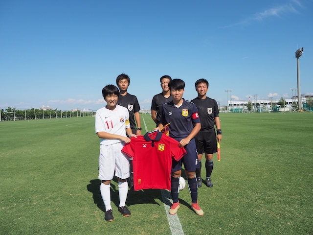 試合前に両チームで記念写真を撮りました。