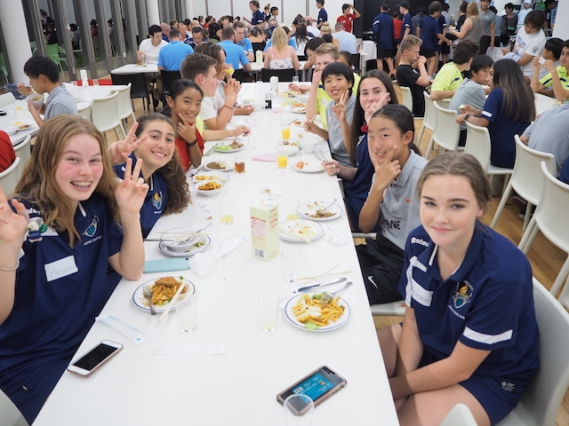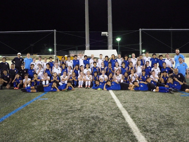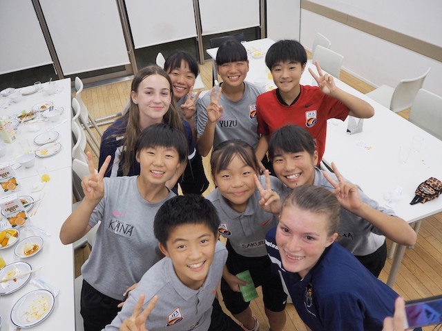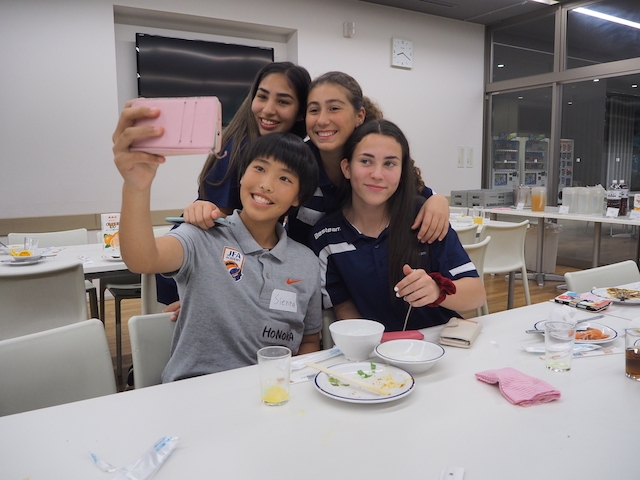 10月3日、オーストラリアから来日し、現在J-GREEN堺で合宿中のFLAME FCとの交流企画で、合同トレーニングと食事会が開催されました。FLAME FCは男子U-16とU-13、女子U-15の3つのカテゴリーが一緒に来日しています。それぞれのカテゴリー毎に活動をしていますが、この日はアカデミーとの合同トレーニングに女子U-15と男子U-13が参加しました。食事会にはFLAME FCとアカデミー堺の全選手とスタッフ、同行しているFLAME FCの保護者の皆様も参加し、総勢100名近い大宴会になりました。
