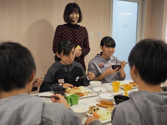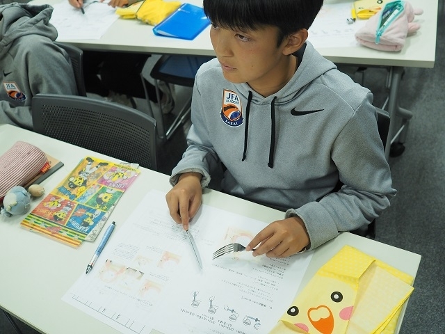 JFAアカデミー堺では、オフ・ザ・ピッチのプログラムを充実させていて、英会話など様々なプログラムを行っています。先日はマナーセミナーが開催されました。マナーセミナーは1学期に一回のペースで挨拶から食事のマナー、手紙の書き方、面接の受け方などを学びます。講師である岸田輝美先生のパワー溢れる楽しい講義をアカデミー生も楽しみにしています。