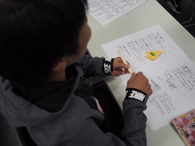 1年生と2年生は一緒にお箸の使い方を学びました。