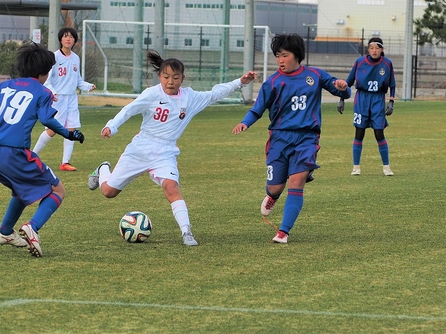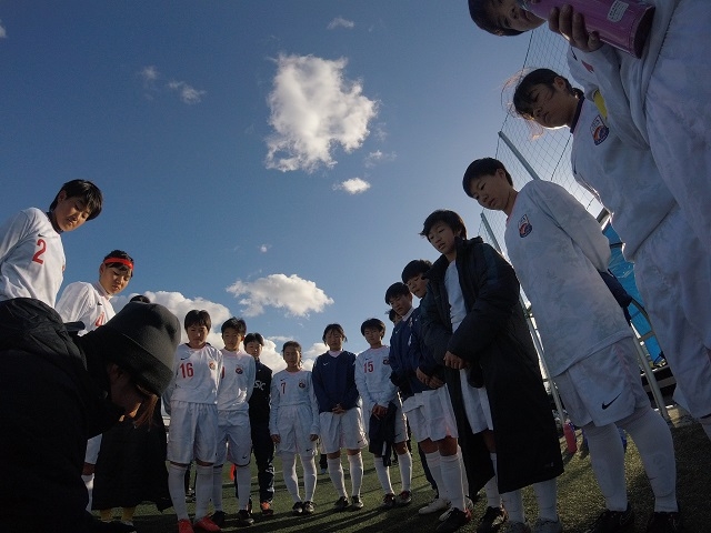 厳しい寒さの中での試合でした。午後は風も強くなり、さらに気温は下がっていました。しかし、AチームもBチームも試合を重ねるたびにチームワークが良くなり、気持ちのこもった熱い試合をしていました。この結果を受けてさらに2日目に期待がかかります。2日目の上位トーナメントのAチーム1回戦の相手はまたもや藤枝順心SCジュニアユース。グループリーグでは5−0で勝利していますが、油断はできません。Bチームはアカデミー今治のAチーム。こちらの対戦相手は3年生中心のチームですが、Bチームも普段からAチームと何度も練習試合を経験してきて、互角の戦いをしてきているので負ける気はしません。