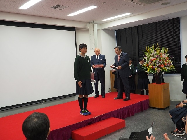 再び、赤須スクルールマスターと竹山市長が登壇し、卒校生一人一人に卒校証書と記念品が贈られました。