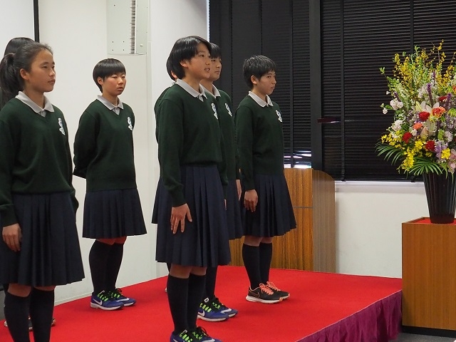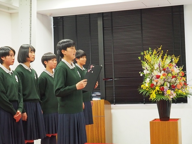 卒業生を代表して2年生の正木美里が送辞を読みました。今日までに何度も何度も練習しました。その甲斐あって立派に大任を果たしました。