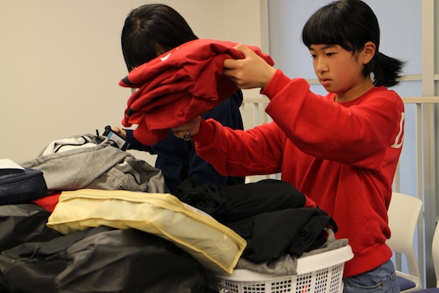 そのあと、準備されたウェアのチェックと記名作業。