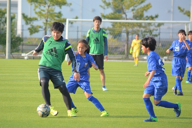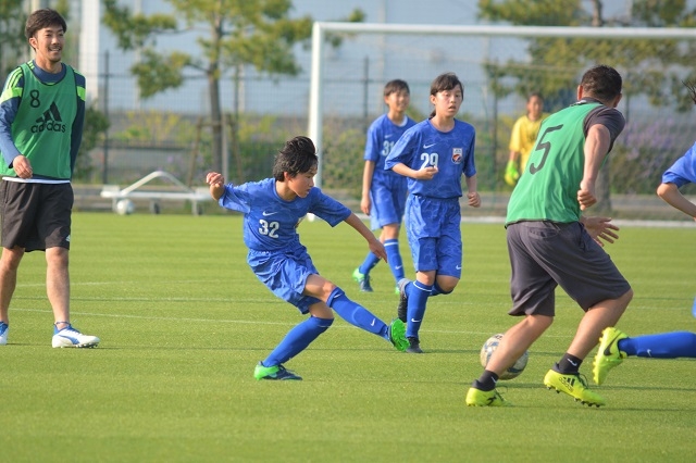 人数をかけてボールを奪いにくるアカデミー生に、元Jリーガーもたじたじ。