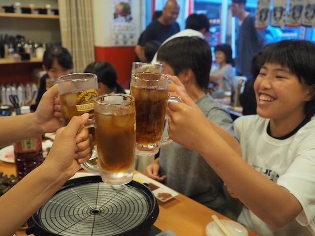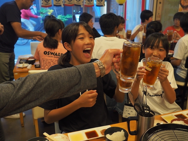 まずは、ウーロン茶で乾杯です。(もちろんスタッフも)