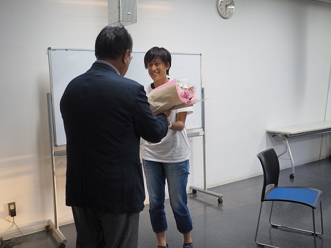 後援会の古川さんから花束贈呈