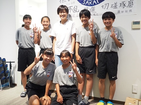 夏休みが明けた9月2日の夕方、1期生の宝田沙織さん(セレッソ大阪堺レディース)がアカデミー堺に来てくれました。宝田さんは、6月にフランスで行われた女子ワールドカップになでしこジャパンの一員として参加し、3試合に出場しました。アカデミー堺の出身者として初めてなでしこジャパンに選出されました。ワールドカップの応援のお礼を兼ねて、現役のアカデミー生に会いに来てくれました。