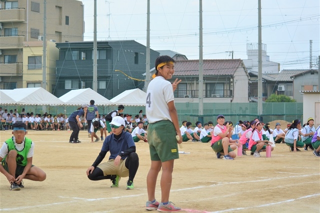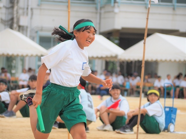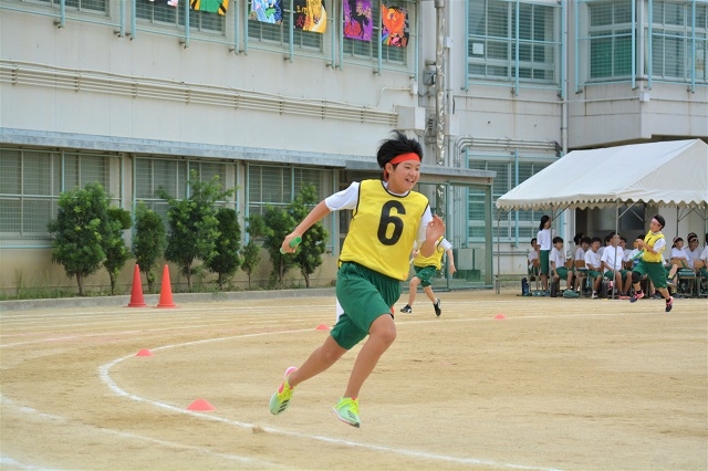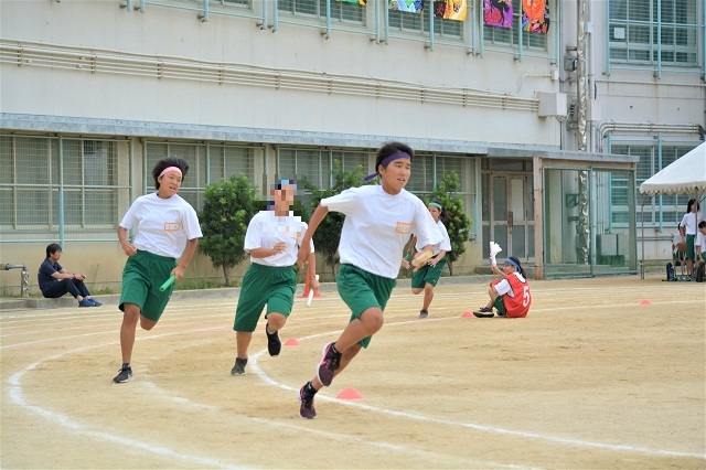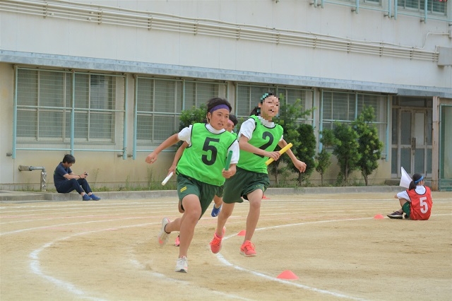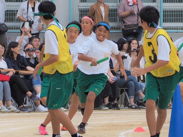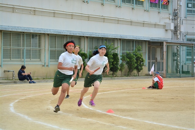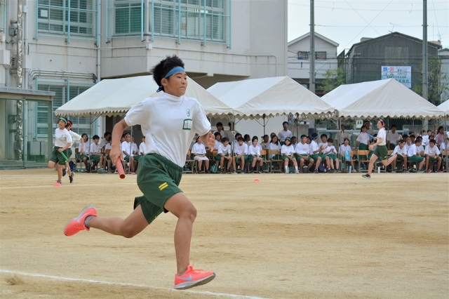 2年3組藤田、2組渡邊が次の走者にバトンを託します。