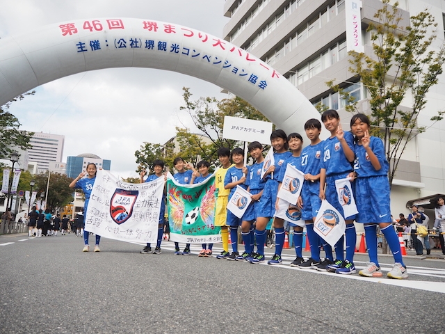 10月20日(日)、JFAアカデミー堺の8期生(1年生)12名は、「堺まつり 大パレード」に出演しました。