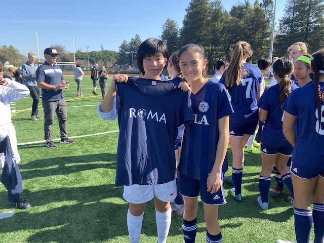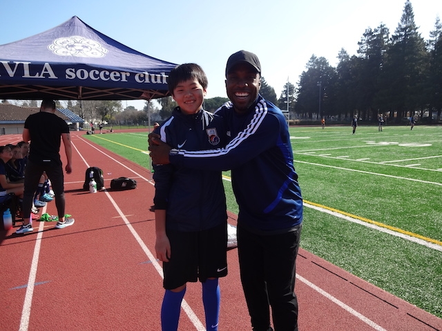 アメリカに来て4日目はMountain View Los Altos(MVLA)と試合をしました。選手はそれぞれのホームステイ先からホストファミリーの車で試合会場にやってきました。