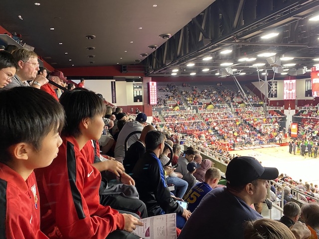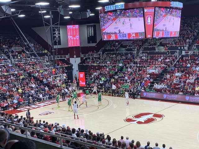 ランチの後はスタンフォード大学へバスケットボール観戦に行きました。男子のスタンフォード大学vsオレゴン大学の試合です。日本の大学スポーツのイメージとは大きく異なり、まさにエンターテイメント。施設の規模、観客の多さ、会場の熱気に圧倒されたようです。