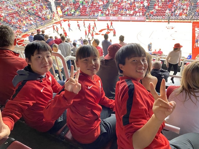 「私たちはスタンフォード大学でバスケットボール観戦と施設見学をしました。スタンフォード大学の施設を見学して驚いたことがあります。それはスポーツをする環境がすごく整っていたことです。広いトレーニングジムがあったりサッカーやアメフトが同じグラウンドではなく、一つのスポーツに一つのグラウンドがありました。水球など水を使うスポーツは温水でいつでも使えるようになっていました。バスケットボールを観戦したときにも驚くことがありました。それは2つあります。1つは大学なのに会場が埋まるくらい観客がたくさんいたことです。2つ目はシュートが決まるたびに大きな歓声が起こったことです。日本ではあまり見られない光景でした。自分もこんな大きな歓声がもらえるような選手になりたいと思いました。」