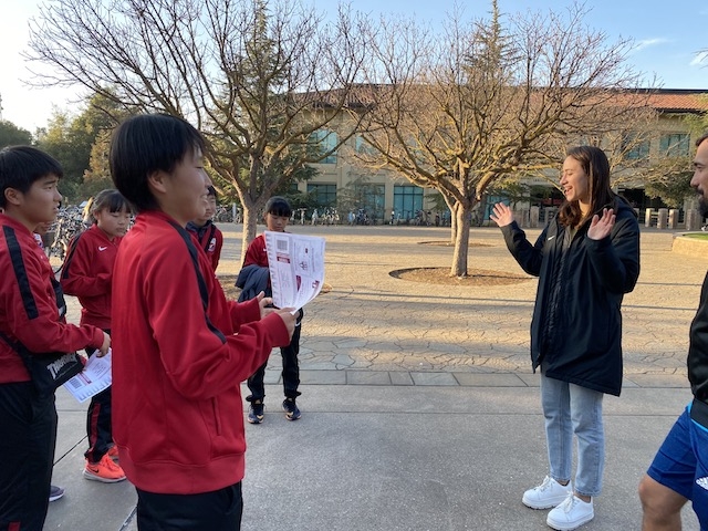 バスケットボール観戦後はスタンフォード大学のスポーツ施設の見学をしました。施設案内をしてくれたのは現役サッカー部員のビアンカ。ビアンカは昨年も案内をしてくれました。トレーニングルームやメディカルルームなどの規模に驚かされました。スポーツの殿堂にはサッカーのみならず様々な競技の輝かしい歴史が詰まっていました。競技毎に立派な施設があり、驚きの連続でした。