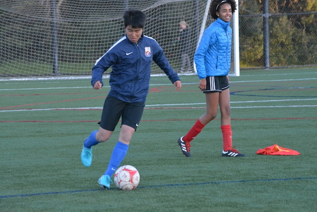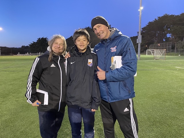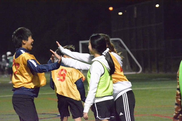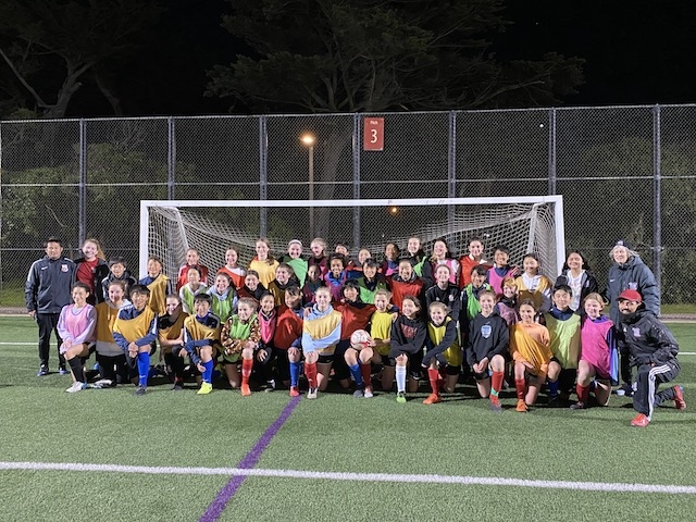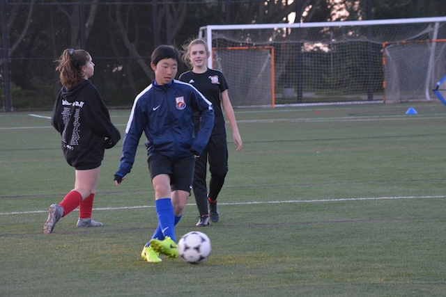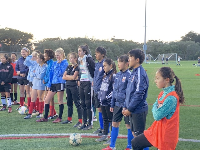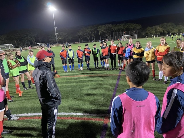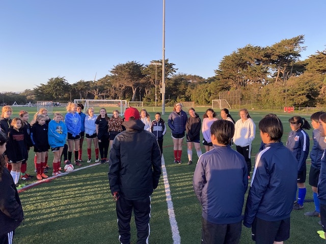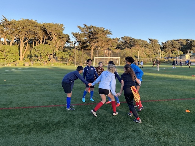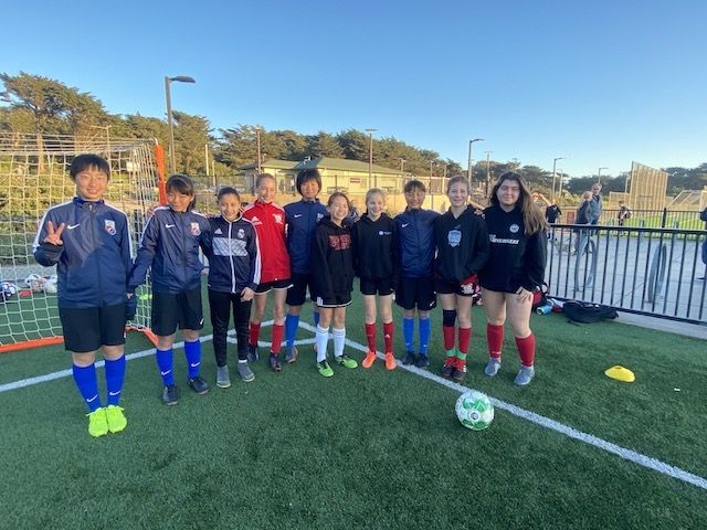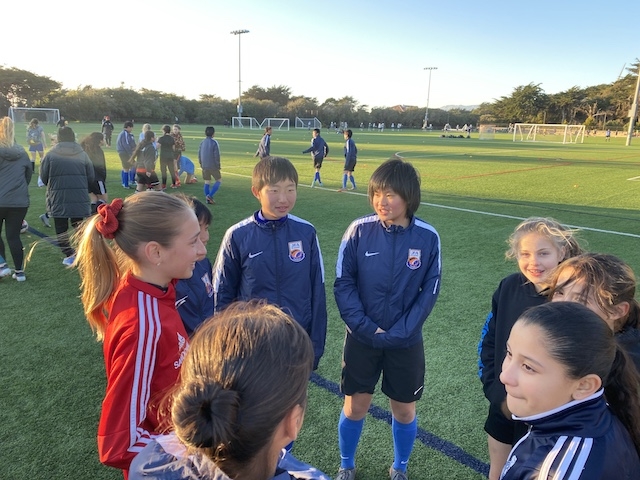 この後は、毎年USA CAMPのコーディネートをしてくれるJovanさんが指導するチーム「サンフランシスコバイキングス」という女子サッカーチームと合同でサッカーをして交流しました。トレーニングの指導もJovanさんがしてくれました。両チームの選手同士が積極的にコミュニケーションを取り合い、とても楽しい時間が過ごせました。
