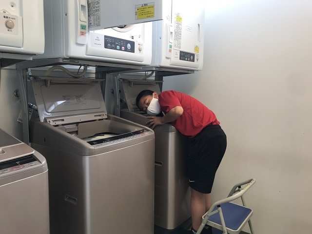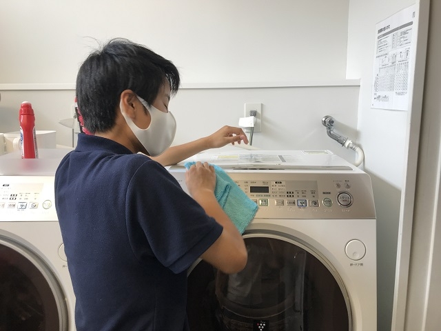 ランドリー組も心を込めて清掃中。2年堤、1年鳥山、高橋。