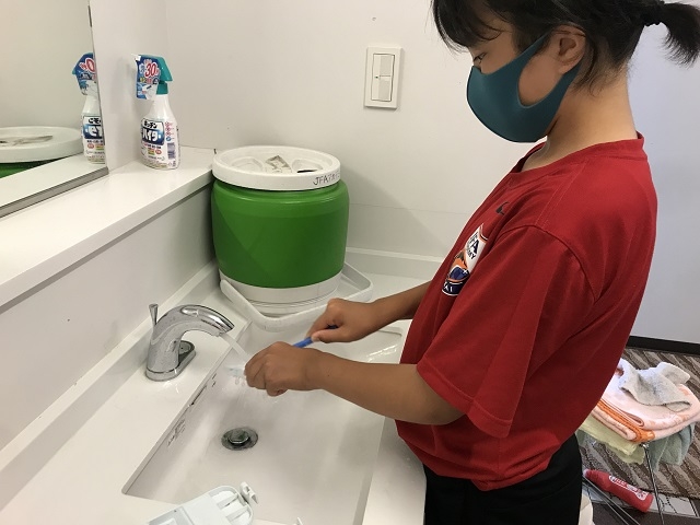 アカデミー堺では8月8日から始まる夏季休暇の長期帰省を前に、選手・スタッフ全員で寮内の大掃除を行いました。自粛明けにも各部屋の掃除を行いましたが、この日は共有スぺ―スの隅々まで手分けして綺麗にしていきます。