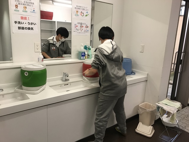 脱衣所の2年三納・1年中野ペアも、てきぱきと進めていました。