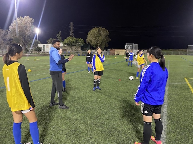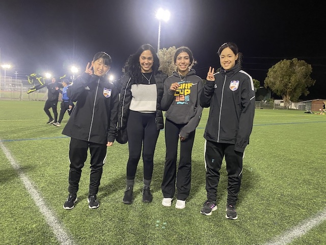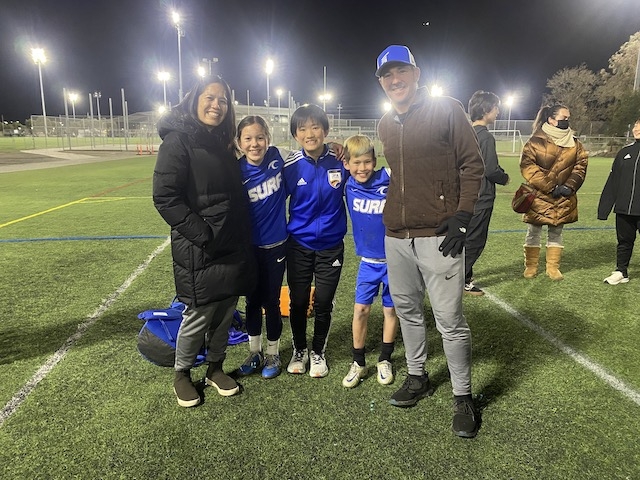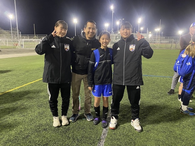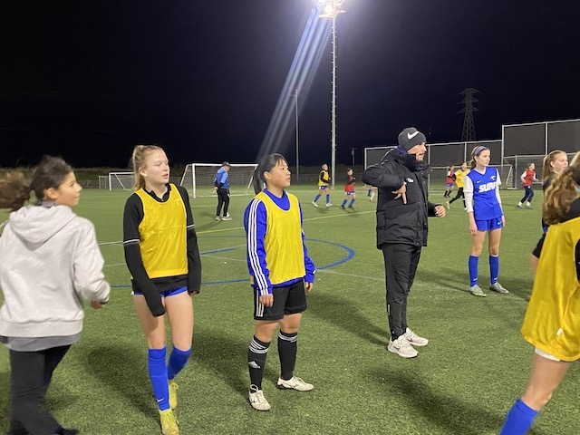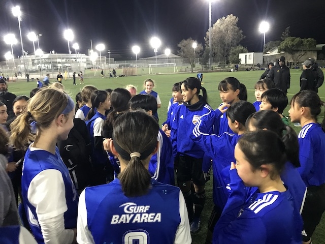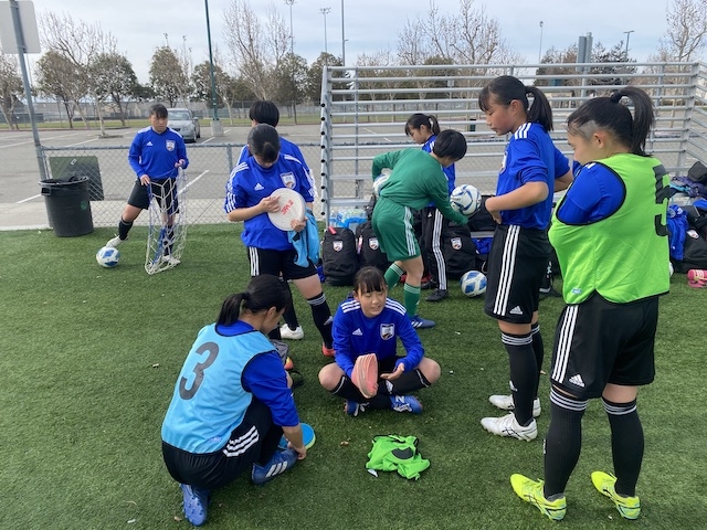 夕方は18時から、Bay Area Surfとの合同トレーニングです。今回は、10期生と同じ2008年生まれの年代とその一つ下の年代が参加いるセッションに混ぜてもらいます。ウォーミングアップは、いくつかのグリットに分かれて5v2のボール回し、動的ストレッチを入れた後は、3つのグループに分かれてステーショントレーニングという形で進みました。